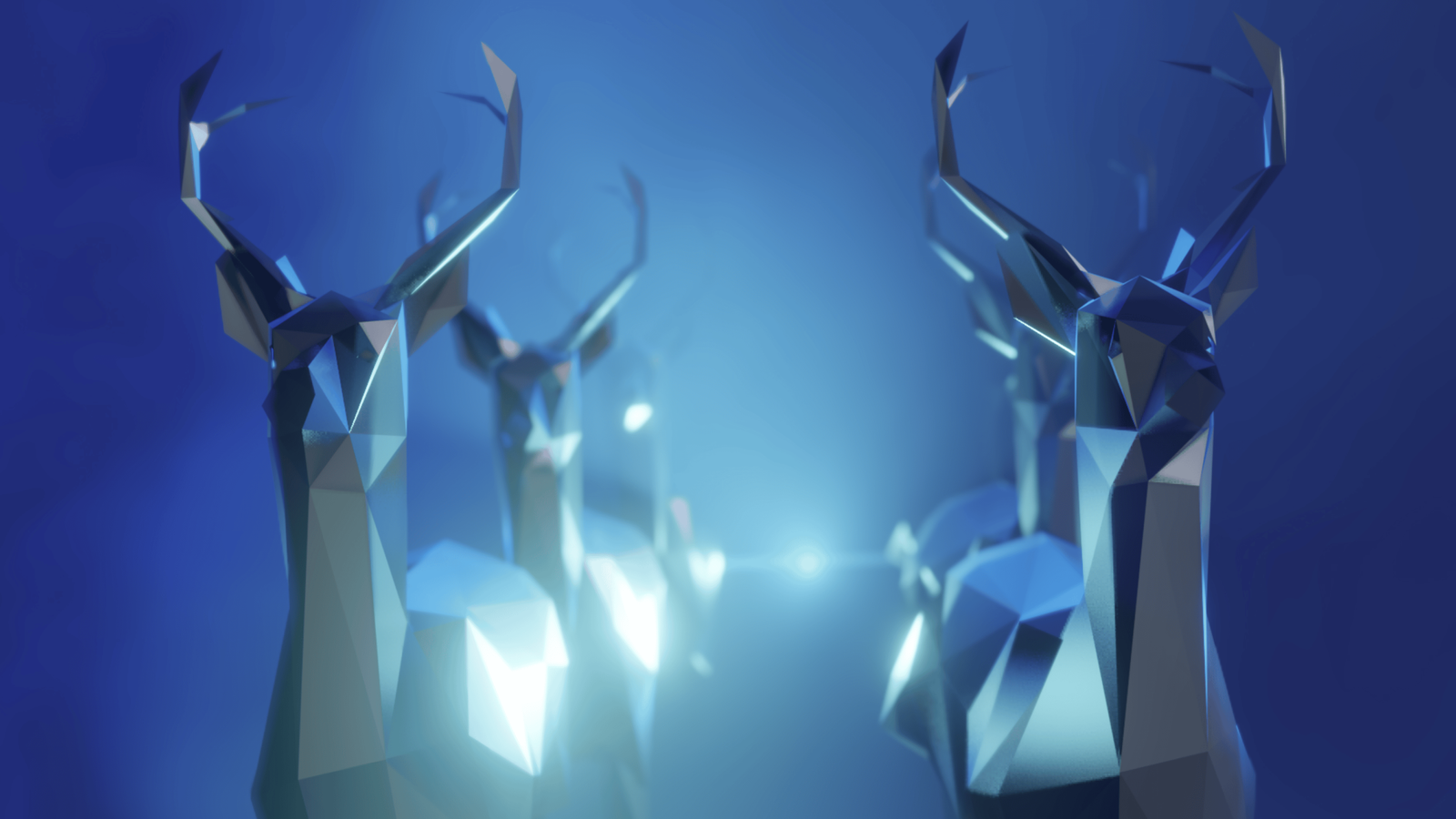 A low-poly reindeer team designed to match the vehicle’s language, with a rig built for coordinated motion. Each reindeer has its own skeletal controls, plus a higher-level system that links the whole chain — so turns and direction changes travel smoothly from the front pair through the lineup and into the vehicle, creating a sense of shared inertia.