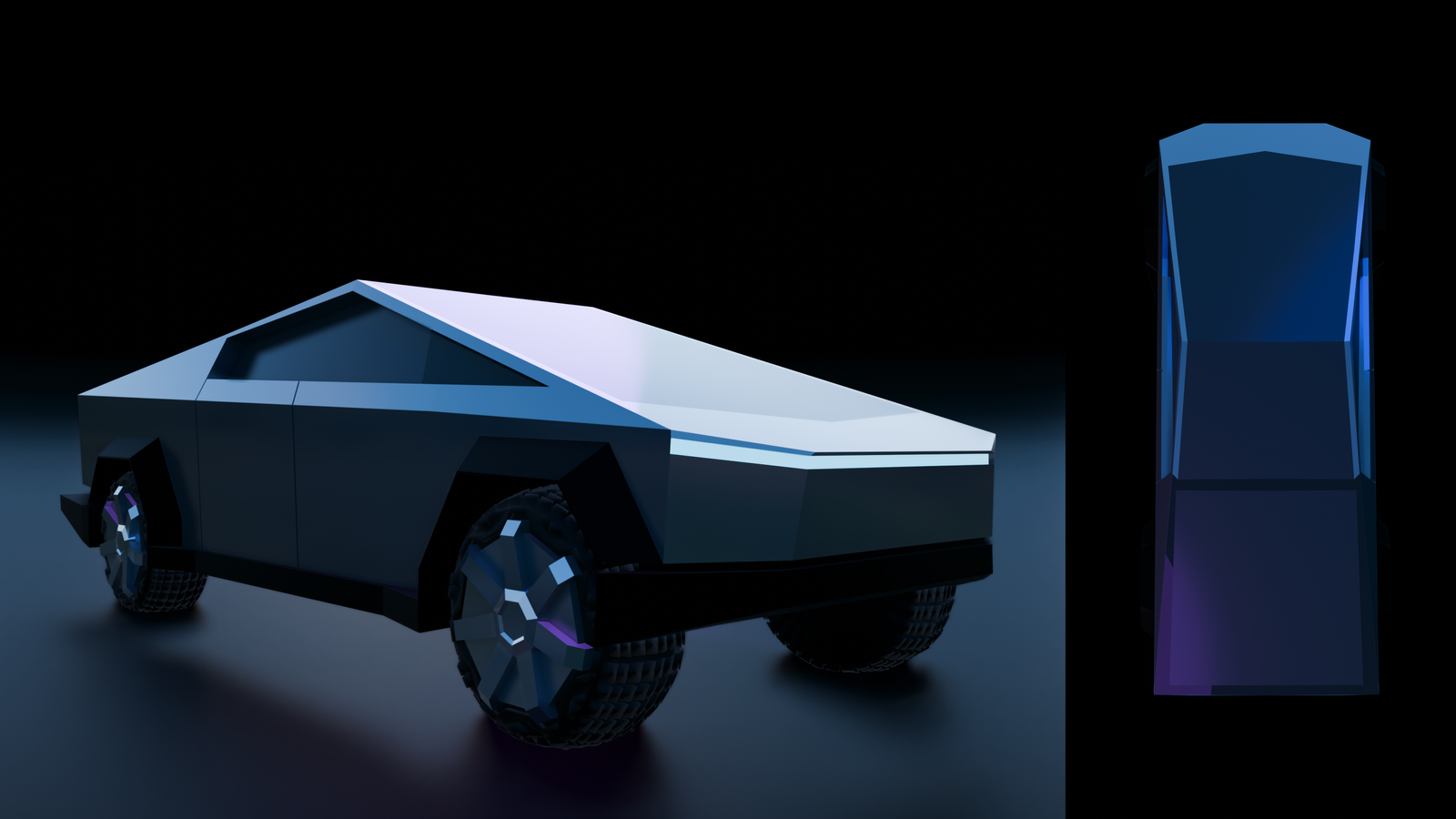 A hard-surface vehicle built around a crisp, angular silhouette — minimal, graphic, and intentionally low-poly in spirit. The design focuses on clear geometry and proportions that support both still images and motion.